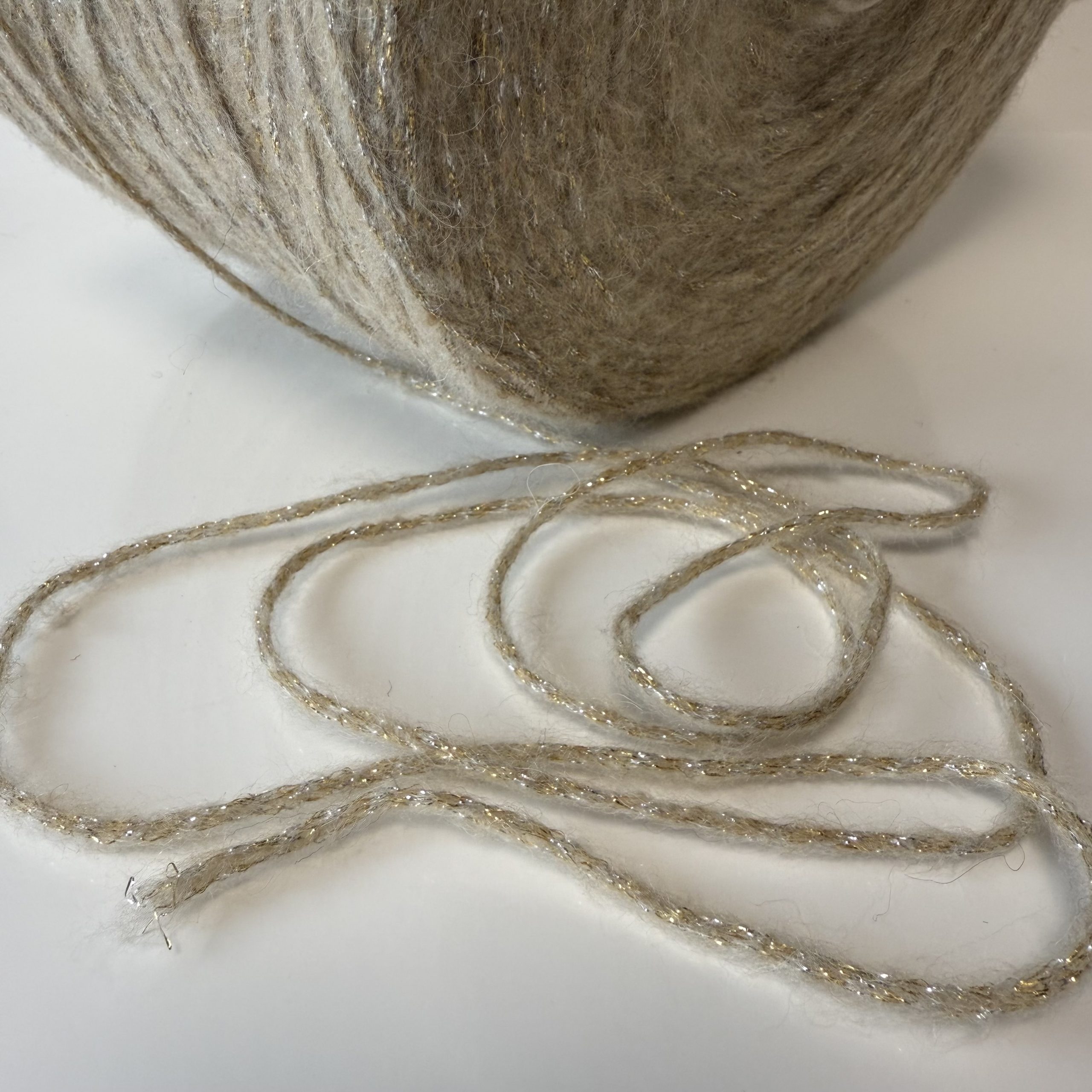 Sudėtis: Alpakos vilna 5%, Vilna 10%, Akrilanas 44%, Poliamidas 20%, Metalizuotas poliesteris 21%.